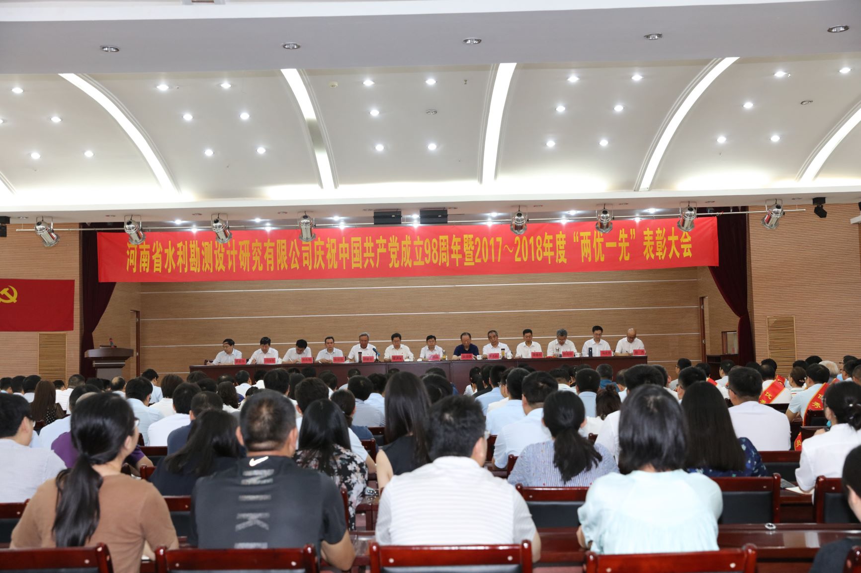6月28日上午,河南省水利勘測(cè)設(shè)計(jì)研究有限公司慶祝中國(guó)共產(chǎn)黨成立98周年暨“兩優(yōu)一先”表彰大會(huì)隆重舉行。公司200余名黨員齊聚一堂,大家整齊著裝、胸佩黨員徽章,共同慶祝中國(guó)共產(chǎn)黨98歲華誕。水利廳副廳級(jí)領(lǐng)導(dǎo)、總工程師李斌成、廳直機(jī)關(guān)黨委副書記劉亞琪出席大會(huì)。
