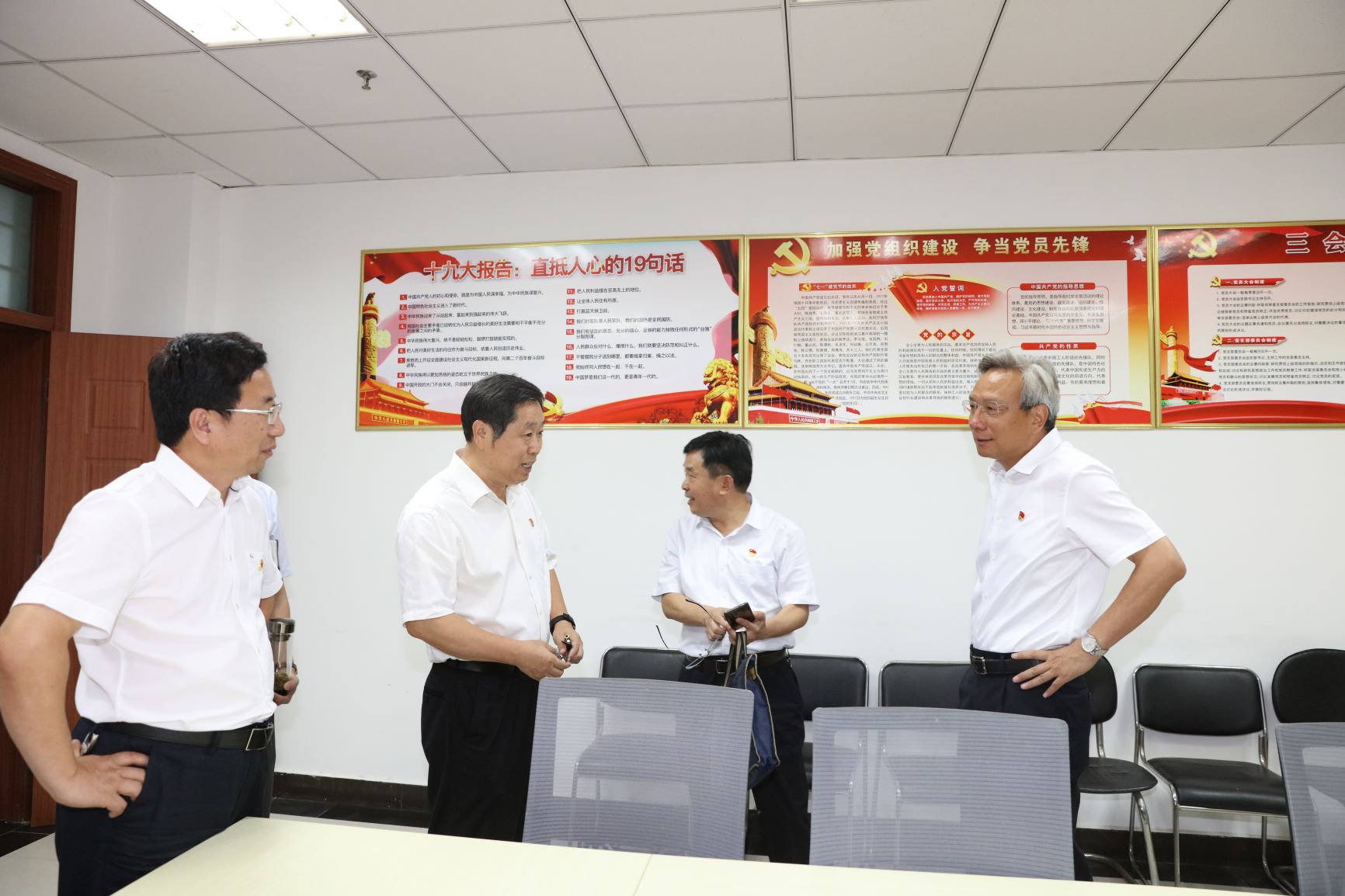 會(huì)后,李斌成總工一行在公司黨委書記、董事長(zhǎng)翟淵軍等陪同下深入工程設(shè)計(jì)一院黨支部了解支部工作情況,參觀支部活動(dòng)室和公司展廳。