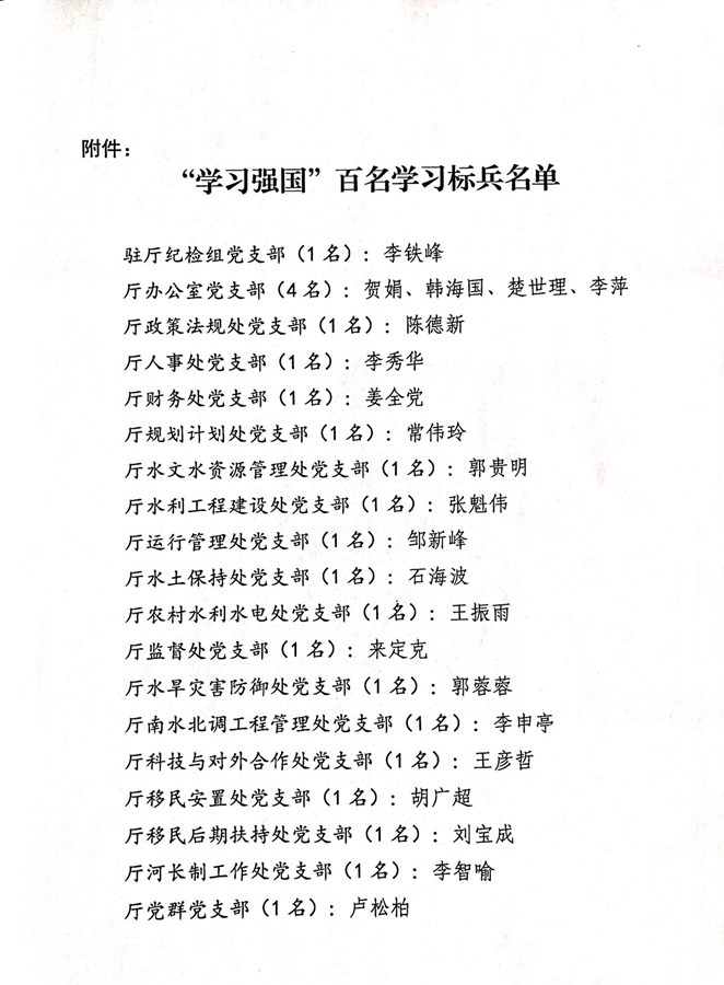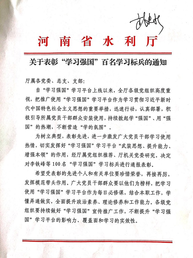 倡議全體黨員向標(biāo)兵學(xué)習(xí),積極主動用好“學(xué)習(xí)強國”平臺,以此為抓手,不斷用習(xí)近平總書記治國理政方略武裝頭腦,并學(xué)以致用,將所學(xué)用到我們的工作實踐,指導(dǎo)我們努力工作、奮勇開拓,為新時代水利改革發(fā)展作出更大的貢獻(xiàn)。