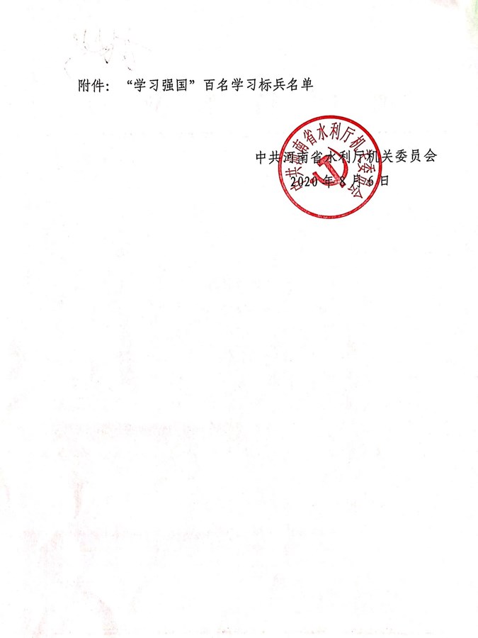 2020年8月6日,廳直機關(guān)黨委下發(fā)了“關(guān)于表彰‘學(xué)習(xí)強國’百名學(xué)習(xí)標(biāo)兵的通知,公司設(shè)計二院黨支部馮濤同志被授予“學(xué)習(xí)強國”百名學(xué)習(xí)標(biāo)兵榮譽稱號。