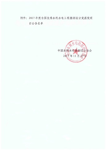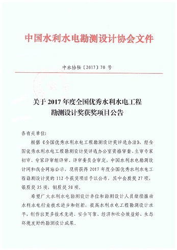11月28日,中國水利水電勘測設(shè)計協(xié)會發(fā)布《關(guān)于2017年度全國優(yōu)秀水利水電工程勘測設(shè)計獎獲獎項目公告》 [中水協(xié)秘〔2017〕70號]文件,對獲得2017年度全國優(yōu)秀水利水電工程勘測設(shè)計獎的112個項目進行了表彰。設(shè)計公司報送的《南水北調(diào)中線一期工程總干渠沙河渡槽段工程》和《南水北調(diào)中線一期工程總干渠沙河南~黃河南禹州和長葛段工程》兩個項目,均被評為金質(zhì)獎。