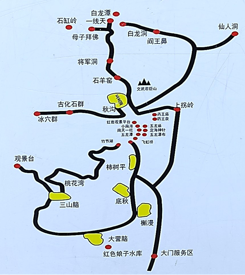 秋溝景區(qū)位于新鄉(xiāng)市輝縣南寨鎮(zhèn)境內(nèi),總面積14平方公里。景區(qū)三面環(huán)山,海拔800多米。景區(qū)內(nèi)山高林密,峽谷壁垂,主要有五龍峽、五龍?zhí)丁⒛咸煲恢?、小南海、紅色娘子水庫(kù)、桃花灣等景點(diǎn)。因?yàn)檫^(guò)去溝內(nèi)盡是楸樹(shù),故取名為楸溝,后簡(jiǎn)化為秋溝。