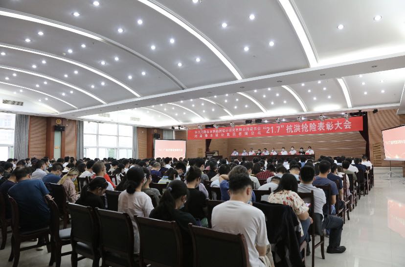 2021年9月24日下午,豫水設計公司在3樓會議室隆重舉行“21.7”抗洪搶險表彰大會,表彰在抗洪搶險中做出突出貢獻的先進共產(chǎn)黨員和先進個人。會議由總經(jīng)理朱太山主持,豫水設計公司全體員工330多人參加了會議。