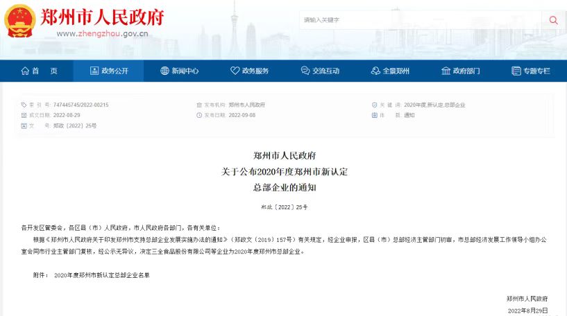 9月8日,鄭州市人民政府公布2020年度鄭州市新認定總部企業(yè)33家。其中包含三全食品、鄭煤機、安圖生物等9家上市公司,豫水設計公司榮膺新認定總部企業(yè)榜單。