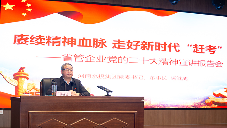 2022年12月12日下午,公司黨委書(shū)記、董事長(zhǎng)翟淵軍帶領(lǐng)公司班子成員現(xiàn)場(chǎng)參加了水投集團(tuán)舉辦的二十大精神報(bào)告會(huì),各支部也組織支部黨員在線參加了學(xué)習(xí)。會(huì)上,水投集團(tuán)黨委書(shū)記、董事長(zhǎng)楊繼成作了《賡續(xù)精神血脈 走好新時(shí)代“趕考”路》的報(bào)告。報(bào)告從大會(huì)主題及主要成果、過(guò)去5年工作和新時(shí)代十年偉大變革、馬克思主義中國(guó)化時(shí)代化、中國(guó)式現(xiàn)代化、全面建設(shè)社會(huì)主義現(xiàn)代化國(guó)家的目標(biāo)任務(wù)、堅(jiān)持黨的全面領(lǐng)導(dǎo)和全面從嚴(yán)治黨、應(yīng)對(duì)風(fēng)險(xiǎn)挑戰(zhàn)、傳承弘揚(yáng)紅旗渠精神等8個(gè)方面對(duì)黨的二十大精神進(jìn)行了全面解讀和輔導(dǎo)。報(bào)告緊扣主題、內(nèi)涵豐富、邏輯嚴(yán)謹(jǐn),對(duì)廣大黨員準(zhǔn)確把握二十大精神有很強(qiáng)的啟迪作用,對(duì)進(jìn)一步落實(shí)落細(xì)二十大精神有很強(qiáng)的指導(dǎo)意義。