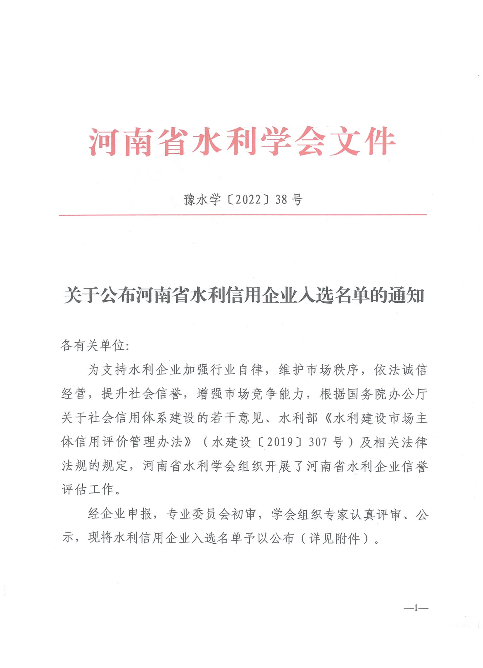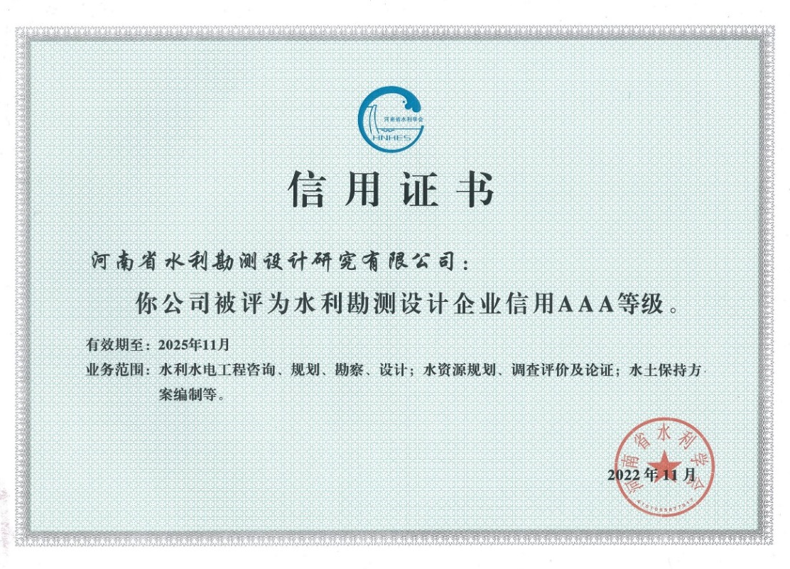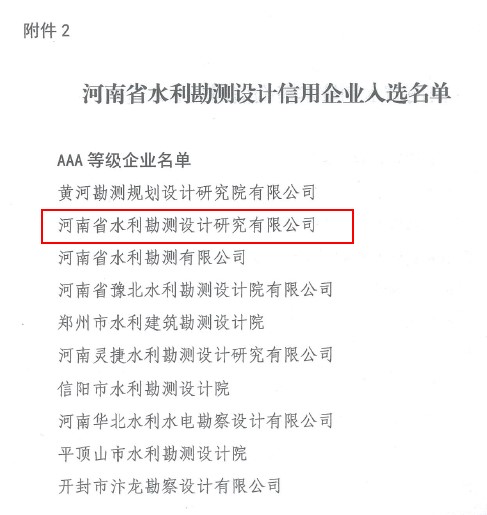近日,河南省水利學(xué)會發(fā)布河南省水利信用企業(yè)入選名單,豫水設(shè)計(jì)公司被評為“水利勘測設(shè)計(jì)企業(yè)信用AAA等級”。