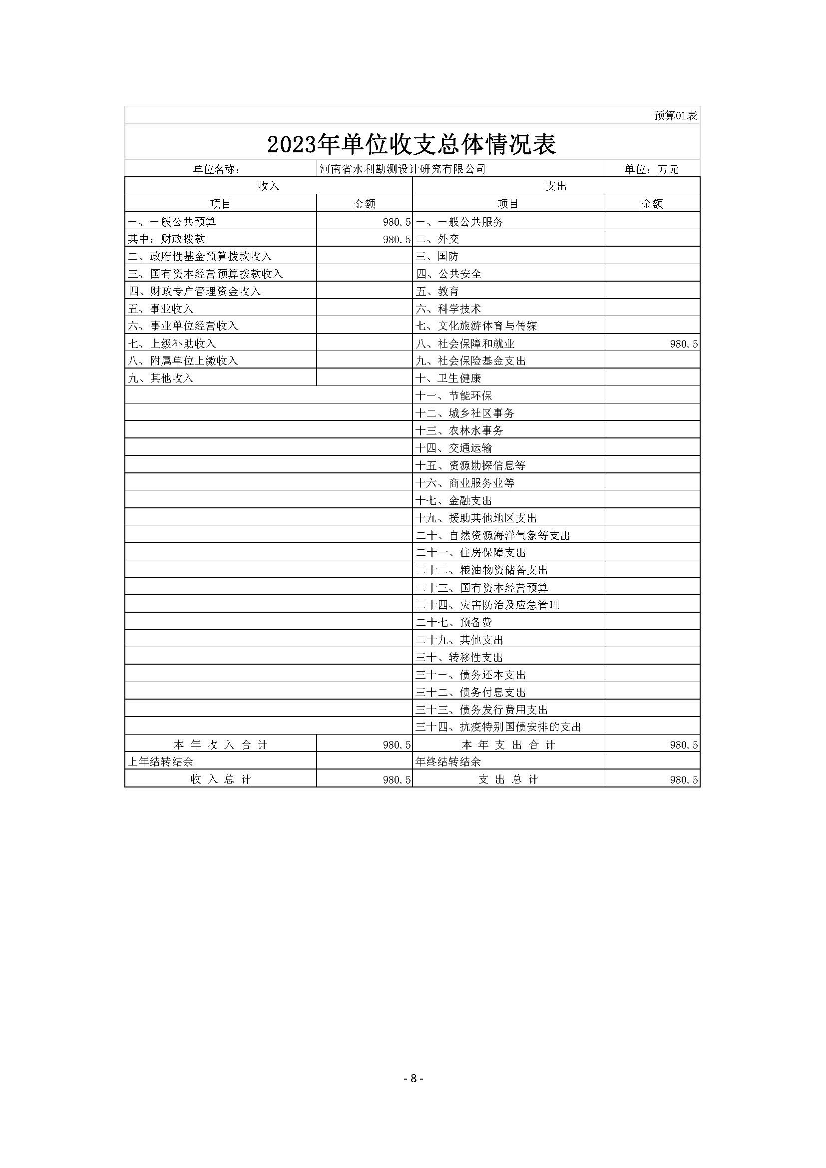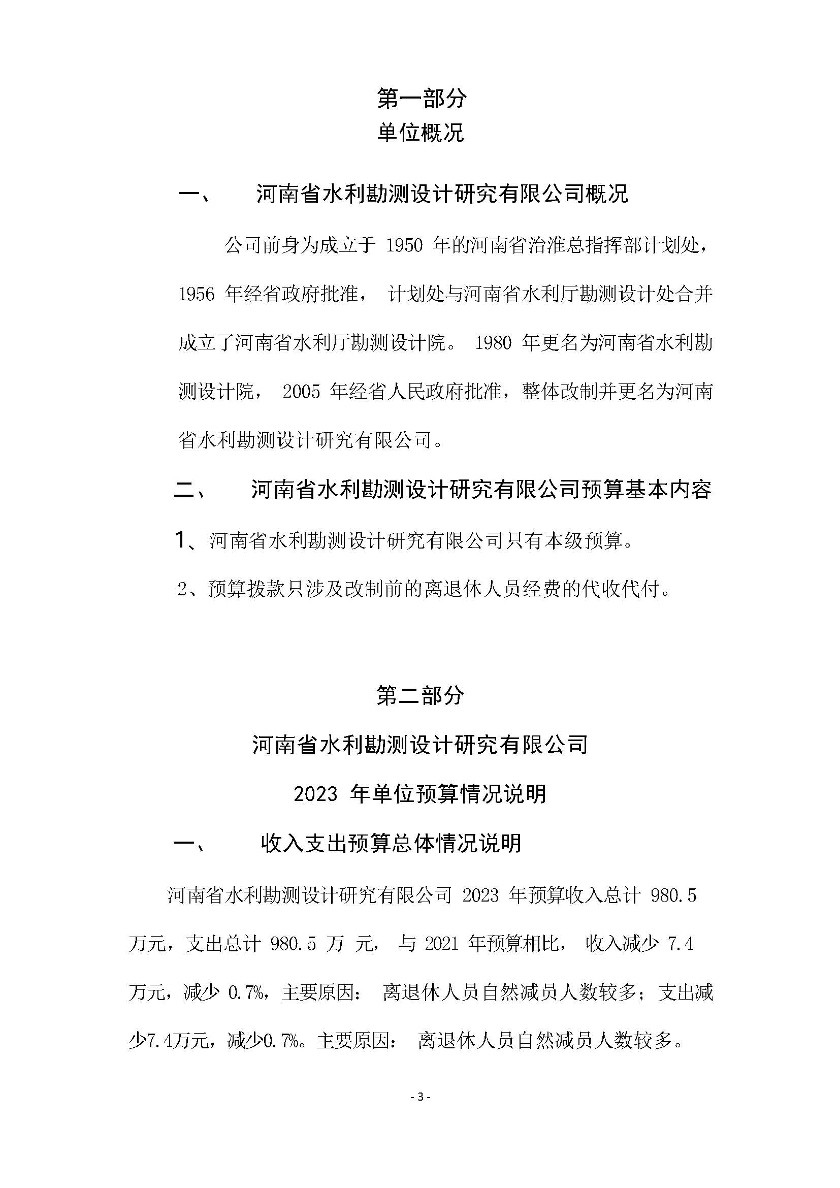 河南省水利勘測(cè)設(shè)計(jì)研究有限公司2023預(yù)算公開