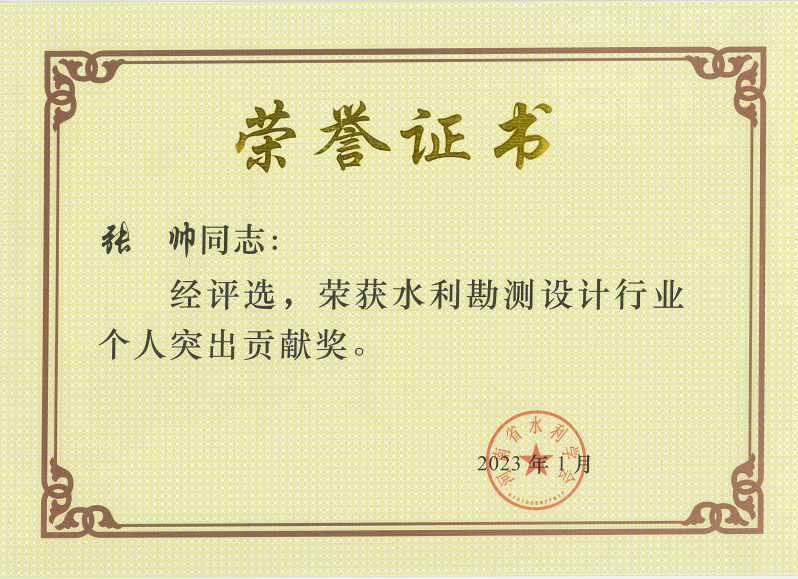 為鼓勵(lì)水利科技工作者開拓創(chuàng)新,2022年11月,河南省水利學(xué)會(huì)在全省開展2022年度個(gè)人突出貢獻(xiàn)獎(jiǎng)評(píng)選活動(dòng),19名同志被評(píng)為勘測(cè)設(shè)計(jì)類個(gè)人突出貢獻(xiàn)獎(jiǎng),公司技術(shù)副總監(jiān)牛賀道和工程設(shè)計(jì)二院張帥兩位同志獲此殊榮。
