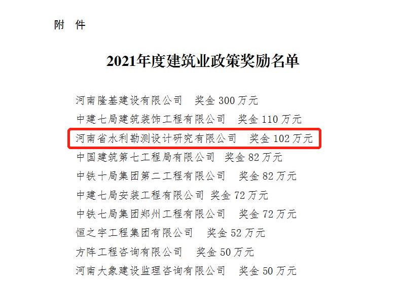 為推動(dòng)鄭州市建筑業(yè)高質(zhì)量發(fā)展,會(huì)上對(duì)2021年取得突出業(yè)績(jī)的103家建筑企業(yè)進(jìn)行獎(jiǎng)勵(lì),公司喜獲102萬(wàn)元。