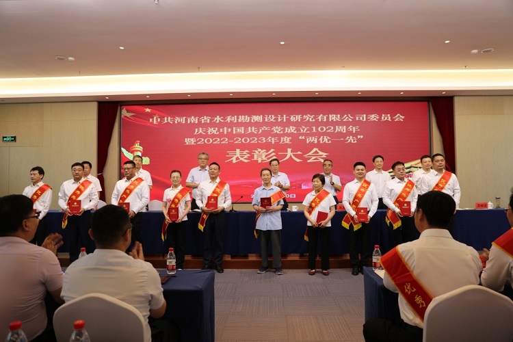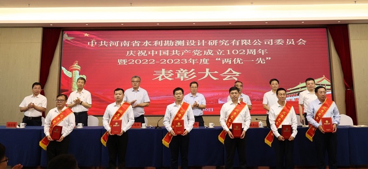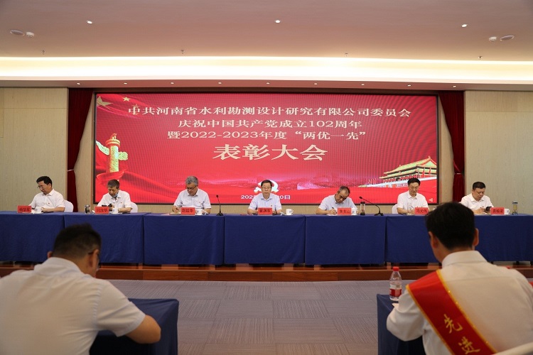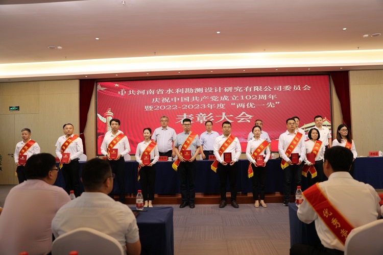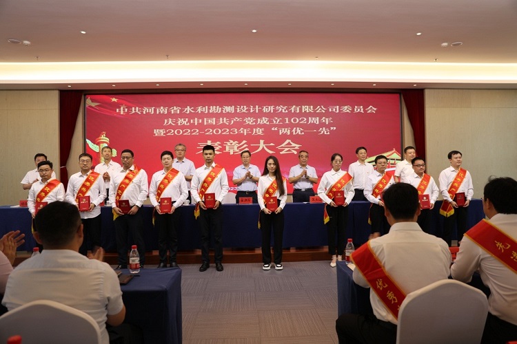 6月30日上午,中共河南省水利勘測(cè)設(shè)計(jì)研究有限公司委員會(huì)隆重舉行慶祝中國(guó)共產(chǎn)黨成立102周年暨2022-2023年度“兩優(yōu)一先”表彰大會(huì),熱烈慶祝偉大的中國(guó)共產(chǎn)黨102歲華誕,系統(tǒng)總結(jié)公司兩年來(lái)黨建工作,表彰2022-2023年度優(yōu)秀共產(chǎn)黨員、優(yōu)秀黨務(wù)工作者和先進(jìn)黨支部,動(dòng)員全體共產(chǎn)黨員向先進(jìn)學(xué)習(xí)、向模范看齊,進(jìn)一步激發(fā)廣大黨員群眾干事創(chuàng)業(yè)動(dòng)力和熱情,共同為豫水設(shè)計(jì)的美好明天團(tuán)結(jié)奮斗。會(huì)議由公司黨委委員、總經(jīng)理朱太山主持。