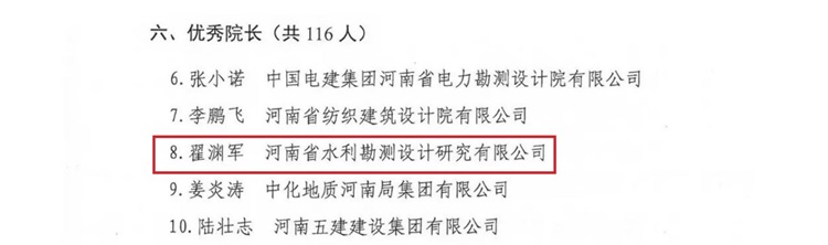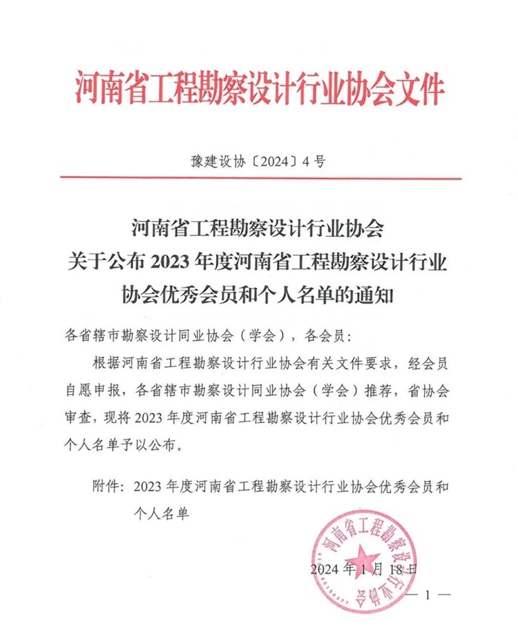 近日,河南省工程勘察設計行業(yè)協(xié)會公布“2023年度河南省工程勘察設計行業(yè)優(yōu)秀會員和個人名單”通知,公司獲得多項表彰。