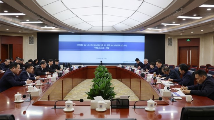 周貴恒一行參觀了豫水設(shè)計公司院史陳列廳,聽取了豫水設(shè)計公司整體工作開展情況匯報,并與公司領(lǐng)導(dǎo)班子、各院部主要負(fù)責(zé)同志進(jìn)行座談。