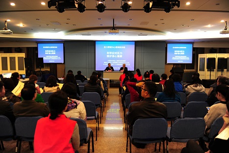 活動(dòng)第一項(xiàng)內(nèi)容為專家講座。12月6日上午,中央國家機(jī)關(guān)職工心理健康咨詢中心主任祝卓宏教授應(yīng)邀作了《科學(xué)應(yīng)對(duì)壓力,維護(hù)身心健康》專題講座。講座中,他圍繞人所面對(duì)的壓力類型、身心應(yīng)對(duì)壓力所做出的反應(yīng)、以及壓力的解決之道三方面進(jìn)行了具體闡述,通過講故事、現(xiàn)場(chǎng)做心理學(xué)實(shí)驗(yàn),帶領(lǐng)大家練習(xí)腹式呼吸、健腦操、正念冥想身體掃描技術(shù)等,極大地活躍了現(xiàn)場(chǎng)的氣氛。
