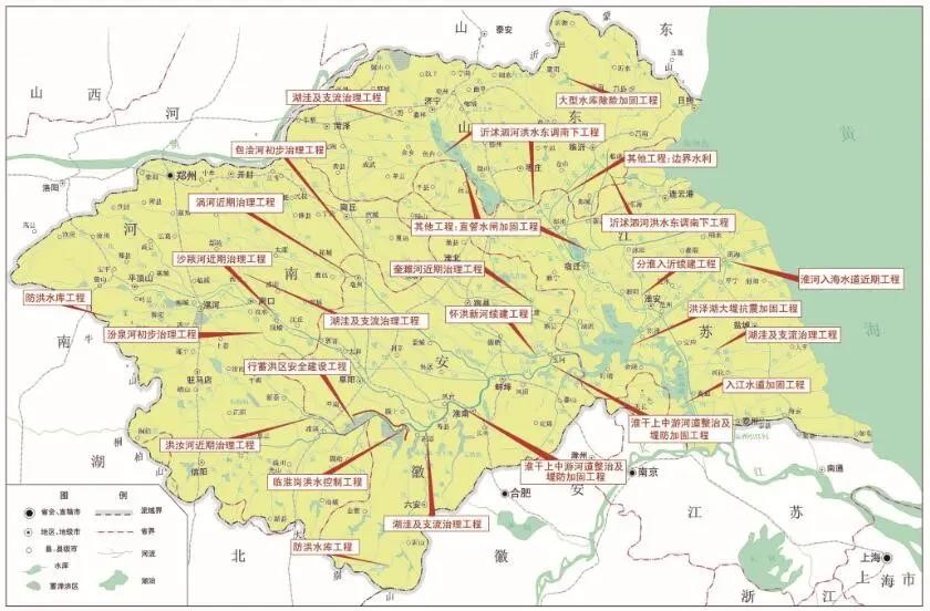 淮河流域防洪除澇標(biāo)準(zhǔn)顯著提高,淮河干流上游防洪標(biāo)準(zhǔn)超10年一遇;中游主要防洪保護(hù)區(qū)、重要城市和下游洪澤湖大堤防洪標(biāo)準(zhǔn)已達(dá)到100年一遇;重要支流及中小河流的防洪標(biāo)準(zhǔn)已基本提高到10—20年一遇以上;沂沭泗河中下游重要防洪保護(hù)區(qū)的總體防洪標(biāo)準(zhǔn)基本上達(dá)到50年一遇;在行蓄洪區(qū)充分運(yùn)用的情況下,可防御新中國(guó)成立以來發(fā)生的流域性最大洪水。