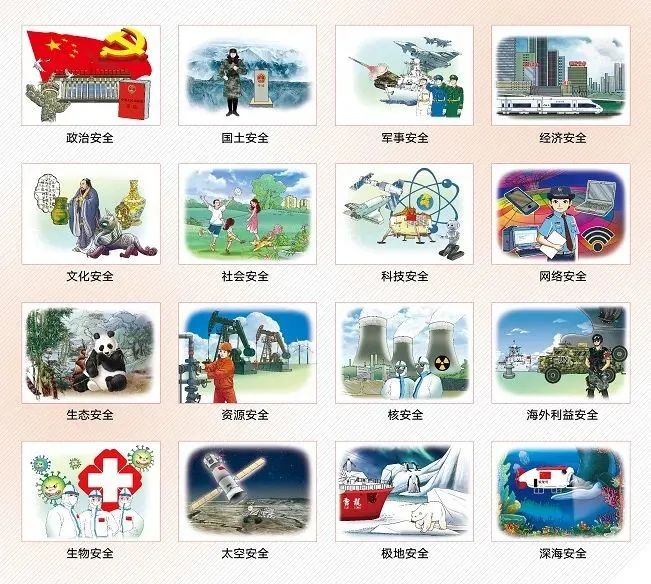 至此,我國國家安全領域主要包括:政治安全、國土安全、軍事安全、經濟安全、文化安全、社會安全、科技安全、網絡安全、生態(tài)安全、資源安全、核安全、海外利益安全、生物安全、太空安全、極地安全、深海安全。
