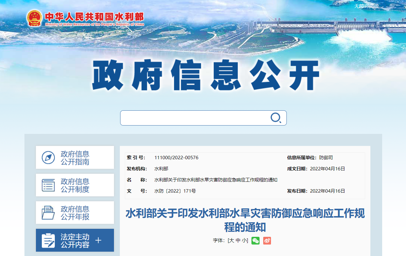 水利部水旱災(zāi)害防御應(yīng)急響應(yīng)工作規(guī)程