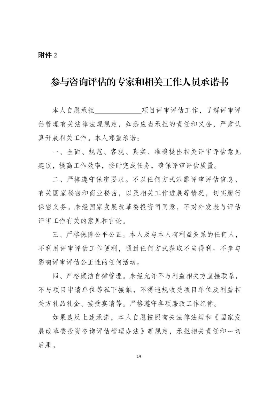 2.參與咨詢評估的專家和相關工作人員承諾