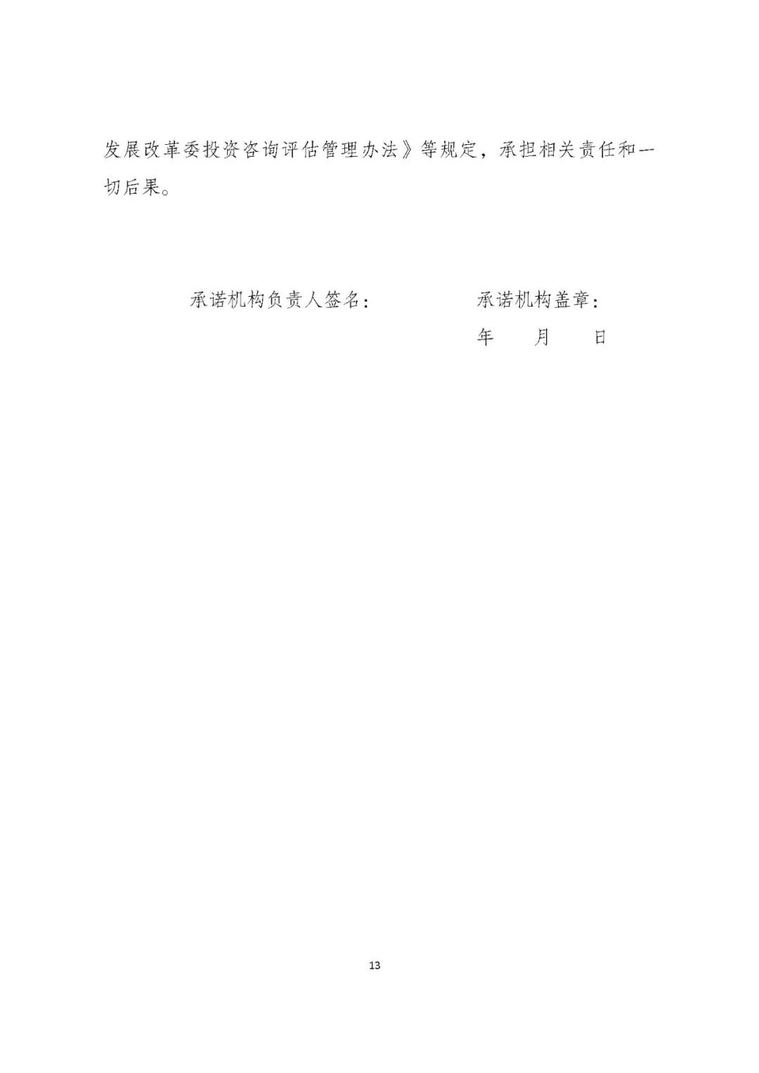 第十八條咨詢評估機構、參與咨詢評估相關工作人員應當按照規(guī)定格式簽訂承諾書,并報投資司存檔備查。咨詢評估機構的承諾書由其法定代表人簽署、咨詢評估機構蓋章,參與咨詢評估的相關工作人員承諾書由本人親筆簽署。