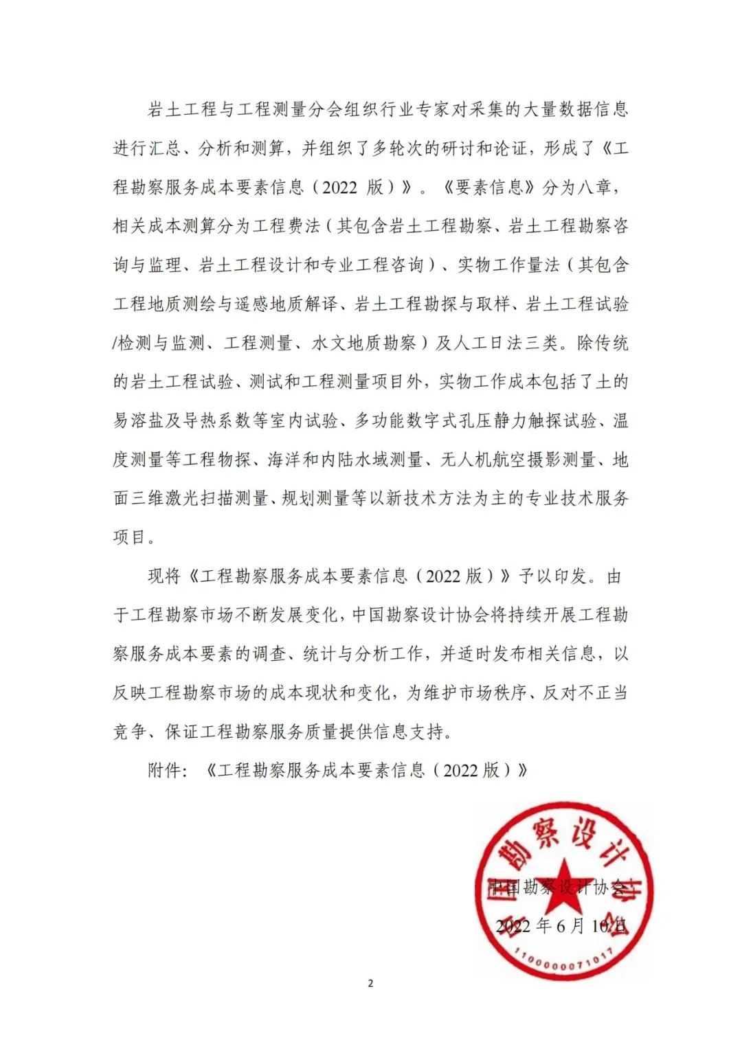 現(xiàn)將《工程勘察服務(wù)成本要素信息(2022版)》予以印發(fā)。