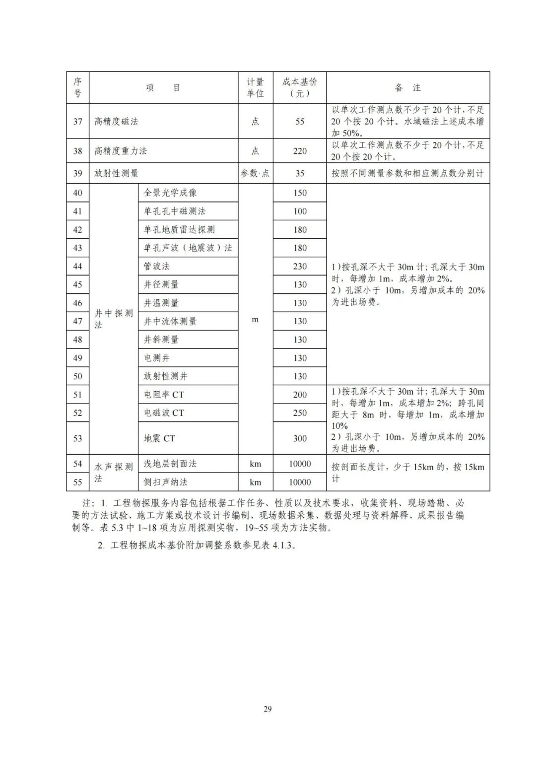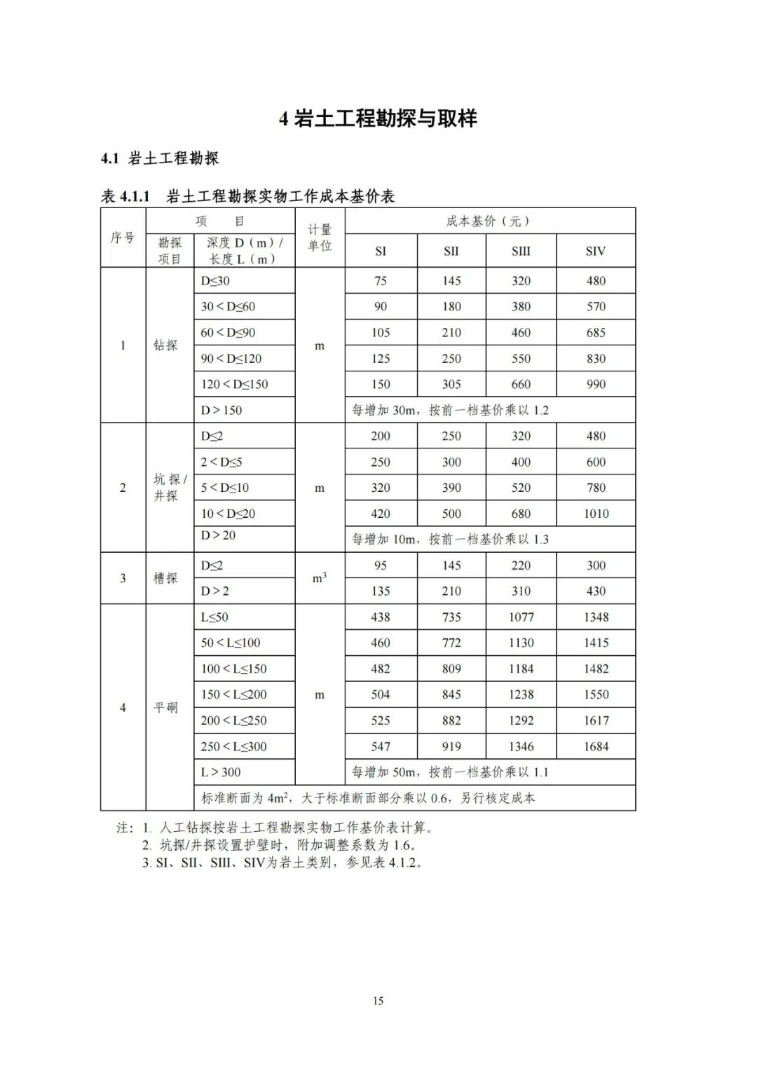 《要素信息》分為八章,相關(guān)成本測(cè)算分為工程費(fèi)法(其包含巖土工程勘察、巖土工程勘察咨詢與監(jiān)理、巖土工程設(shè)計(jì)和專業(yè)工程咨詢)、實(shí)物工作量法(其包含工程地質(zhì)測(cè)繪與遙感地質(zhì)解譯、巖土工程勘探與取樣、巖土工程試驗(yàn)/檢測(cè)與監(jiān)測(cè)、工程測(cè)量、水文地質(zhì)勘察)及人工日法三類。除傳統(tǒng)的巖土工程試驗(yàn)、測(cè)試和工程測(cè)量項(xiàng)目外,實(shí)物工作成本包括了土的易溶鹽及導(dǎo)熱系數(shù)等室內(nèi)試驗(yàn)、多功能數(shù)字式孔壓靜力觸探試驗(yàn)、溫度測(cè)量等工程物探、海洋和內(nèi)陸水域測(cè)量、無人機(jī)航空攝影測(cè)量、地面三維激光掃描測(cè)量、規(guī)劃測(cè)量等以新技術(shù)方法為主的專業(yè)技術(shù)服務(wù)項(xiàng)目。