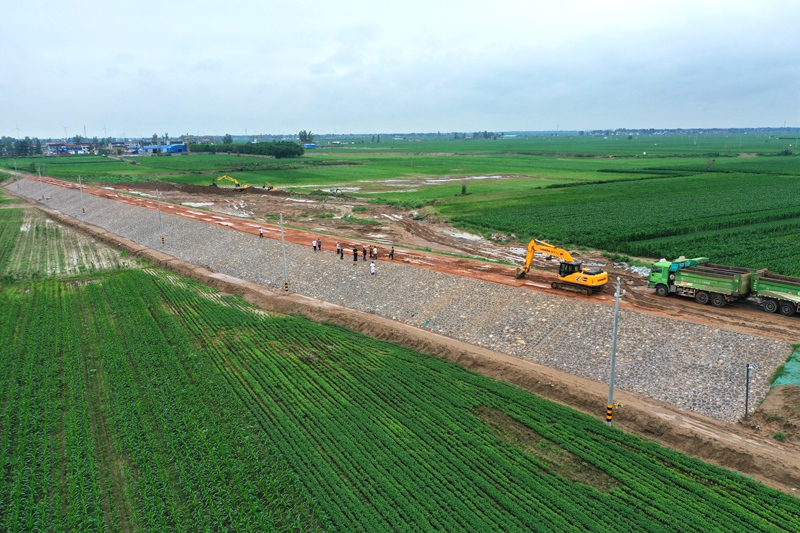 河南浚縣白寺坡滯洪區(qū)付莊堤縣城段改線工程。彭可攝